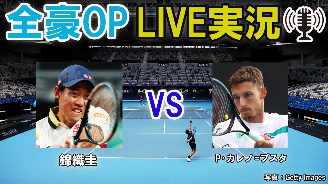 テニスの全豪オープン(オーストラリア/メルボルン、ハード、グランドスラム)1回戦 錦織圭 vs P・カレノ=ブスタ(スペイン)の実況・副音声を行います。