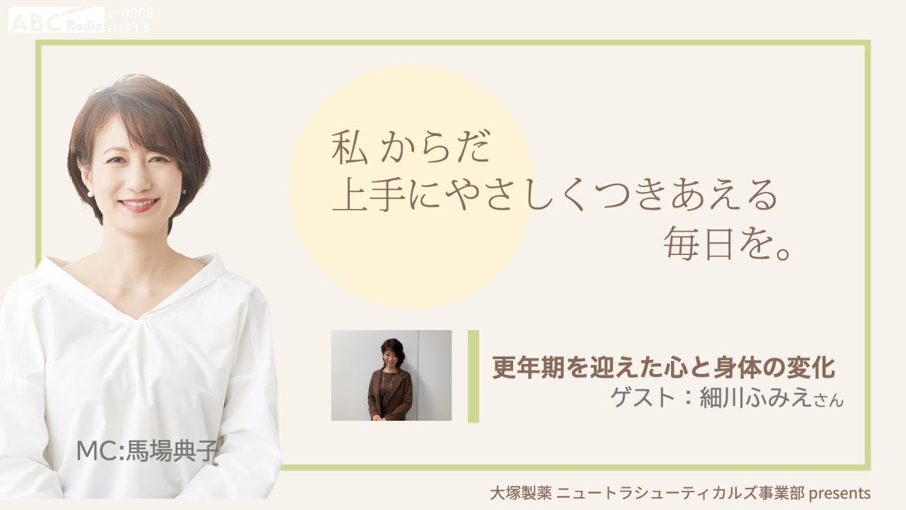 女性には本来、健やかさと美しさを保つ力が備わっています。 しかし、女性にとって基礎といえるその力も、 40才を過ぎるとゆるやかに低下し始めていくのです。 誰にでも訪れるこの変化を深く知り、知ることにより上手に穏やかに過ごしませんか? あなたがあなたらしく美しく生きていくために。 この番組では、きらきらと輝く女性の皆さんをゲストにお迎えし、 健やかに美しく生きるヒントを伺います。 #エクオール#女性の健康#閉経女性ホルモン更年期細川ふみえ