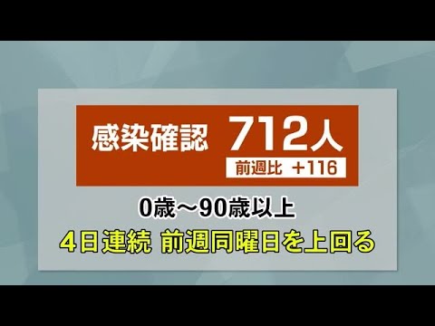 高知県は12月7日、県内で新たに712人の新型コロナウイルスの感染が確認されたと発表しました。前週の同曜日より116人増えていて、4日連続で前週の同曜日を上回っています。