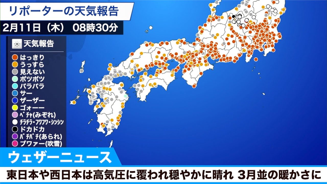 東日本や西日本は高気圧に覆われて、穏やかに晴れます。昼間は日差しが暖かく感じられます。朝晩との気温差がありますので、調節しやすい服装がおすすめです。この暖かさで花粉の飛ぶ量が関東ではやや多く、九州では多くなる予想です。花粉症の方は早めの対策が必要です。 2021Casterウェザーニュースキャスターゲリラ豪雨ゲリラ雷雨ニュース乾燥予報停電北日本台風台風情報地震大雨大雪天気天気予報天気痛情報暴風東日本気象気象予報士洗濯減災西日本防災