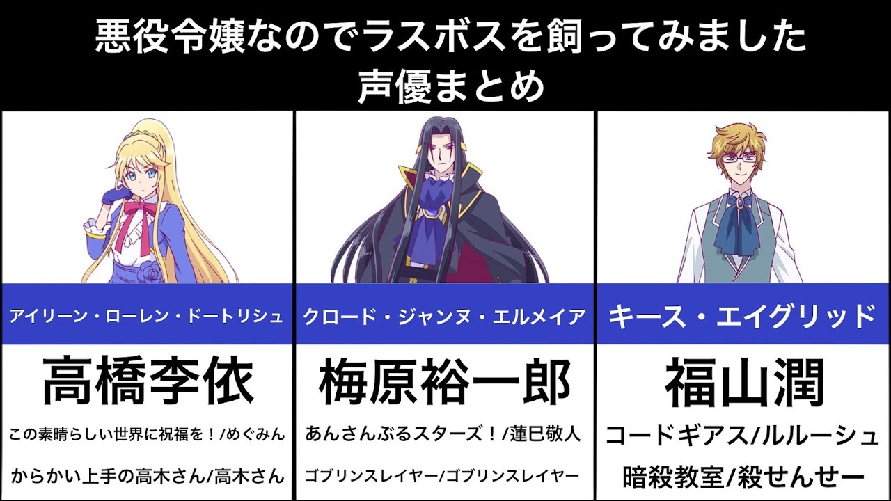 悪役令嬢なのでラスボスを飼ってみましたの声優をまとめました!
