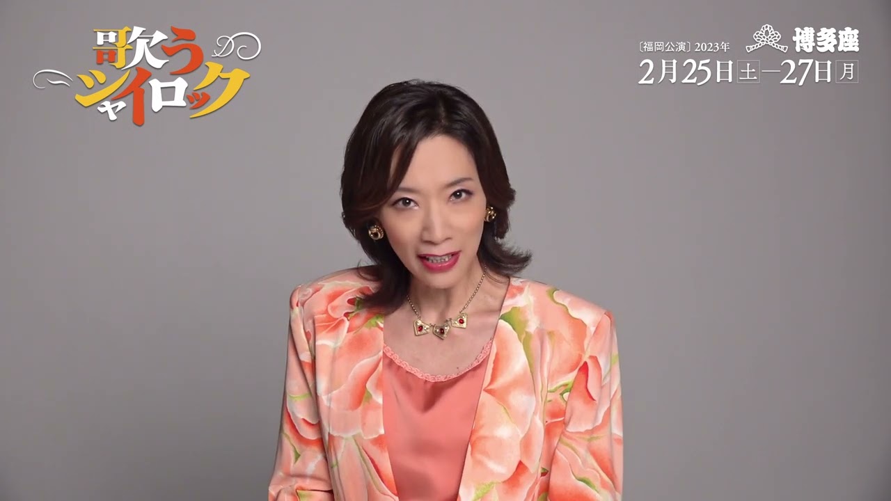Share Facebook Twitter Pinterest LinkedIn 【博多座】 音楽劇『歌うシャイロック』真琴つばさ コメント動画 2023年2月25日(土)~2月27日(月) https://www.hakataza.co.jp/lineup/202302/syairokku/index.php 【公式HP】 shylock_stage.com 作・演出 鄭義信 出演 岸谷五朗 中村ゆり 岡田義徳 和田正人 渡部豪太 小川菜摘 駒木根隆介 福井晶一 マギー 真琴つばさ 星奈優里