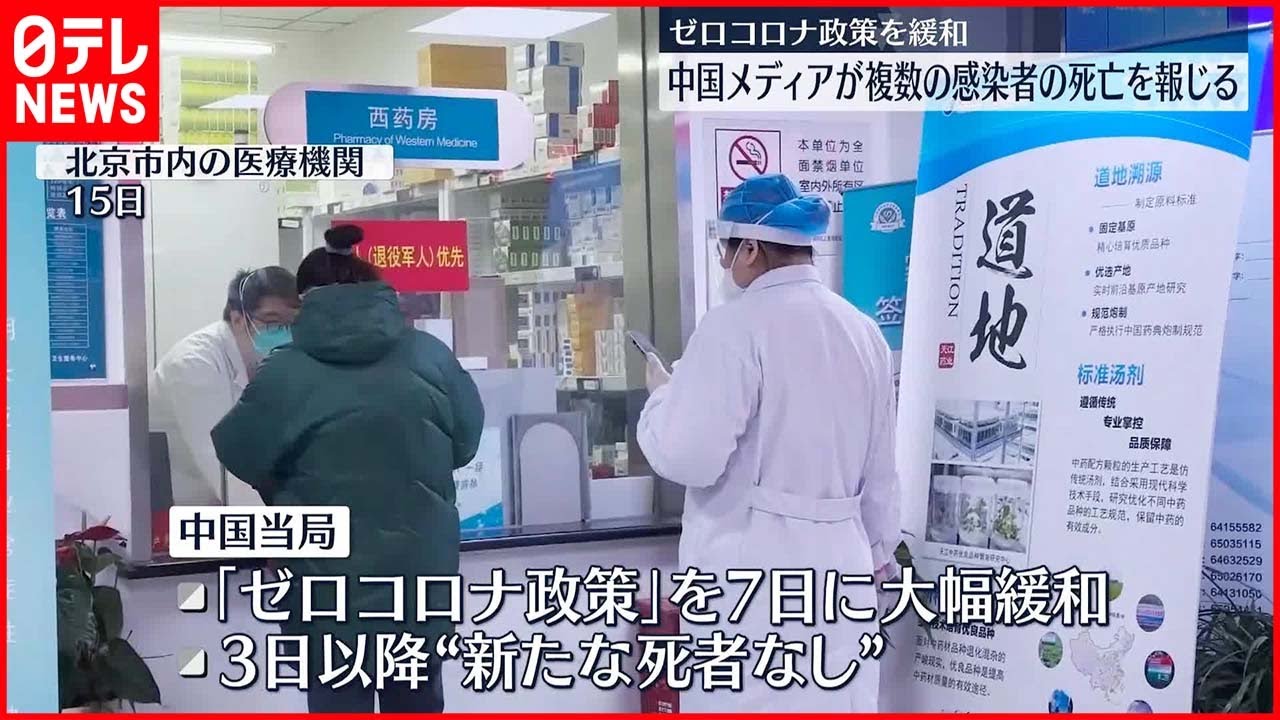 中国は今月7日にゼロコロナ政策を大幅に緩和しましたが、中国当局の発表では、今月3日に2人の死亡が確認された後、新たなコロナによる死者は出ていないとしています。