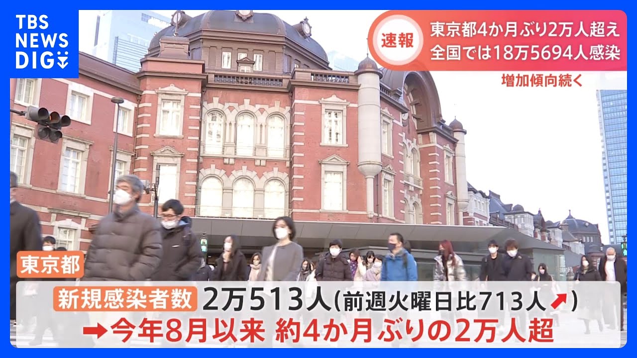 厚生労働省によりますと、東京都できょう新たに報告された感染者は2万513人で、先週の火曜日から713人増加し、今年8月25日以来およそ4か月ぶりに2万人を上回っています。15日連続で前の週の同じ曜日を上回っています。