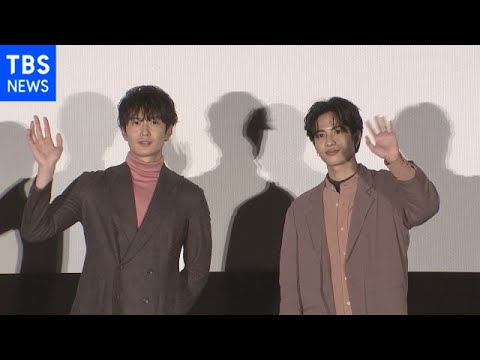 映画「さんかく窓の外側は夜」の大ヒット御礼舞台あいさつに主演の岡田将生さんと志尊淳さんらが登場しました。
