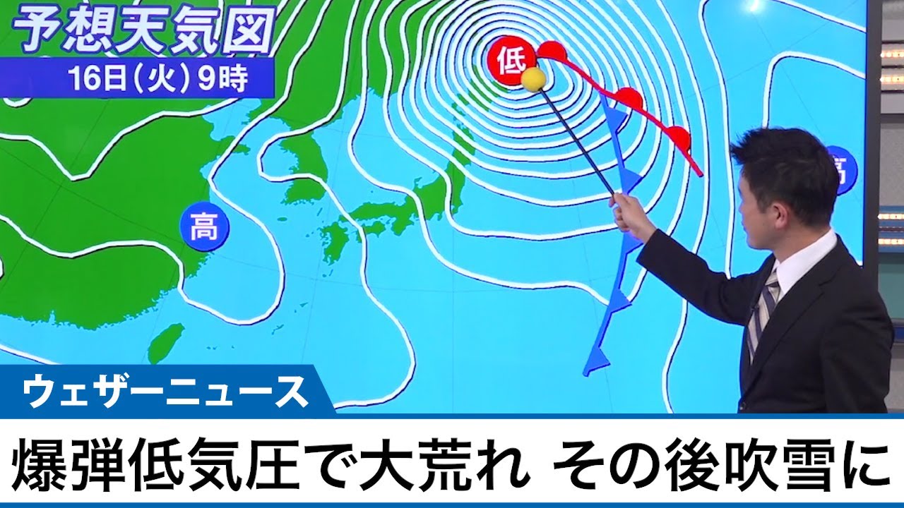 15日(月)は本州の南岸を通過する低気圧が猛烈に発達します。全国的に雨風が強まり荒れた天気になるので警戒が必要です。 16日(火)になると西高東低の気圧配置になり、上空には850hPa(上空約1,500m)で−9℃の非常に強い寒気が南下して、18日(木)にかけて日本列島をすっぽりと覆います。 日本海側を中心に雪が強まり、内陸部では1月7〜9日のような大雪に見舞われるおそれがあります。東北日本海側や北陸エリアの内陸部では、多いところで100cmを超える降雪が予想されているので、警戒が必要です。 2021Casterウェザーニュースキャスターゲリラ豪雨ゲリラ雷雨ニュース乾燥予報停電北日本台風台風情報地震大雨大雪天気天気予報天気痛情報暴風東日本気象気象予報士洗濯減災西日本防災