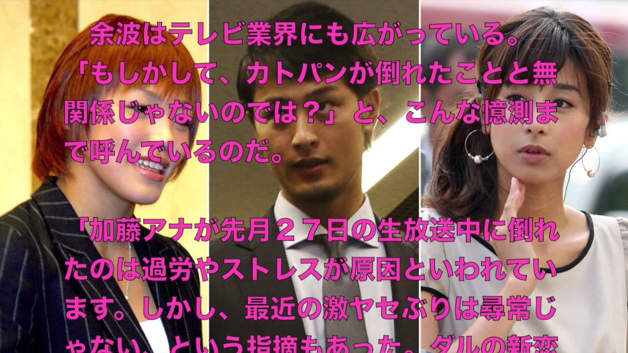 「加藤アナが先月27日の生放送中に倒れたのは過労やストレスが原因といわれています。しかし、最近の激ヤセぶりは尋常じゃない、という指摘もあった。ダルの新恋人が一因だった可能性も捨てきれません。ダルと加藤アナは今年2月に“親密デート”が報じられた。2人はすぐに交際を否定したものの、当時の加藤アナは先輩の高島彩にしきりに恋愛相談を持ちかけていたというウワサもある。ダルの真剣交際には、少なからず思うところがあるはずです」(テレビ業界関係者)