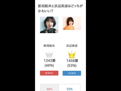 #新垣結衣 と #浜辺美波 はどっちが #かわいい?というテーマの投票結果です。