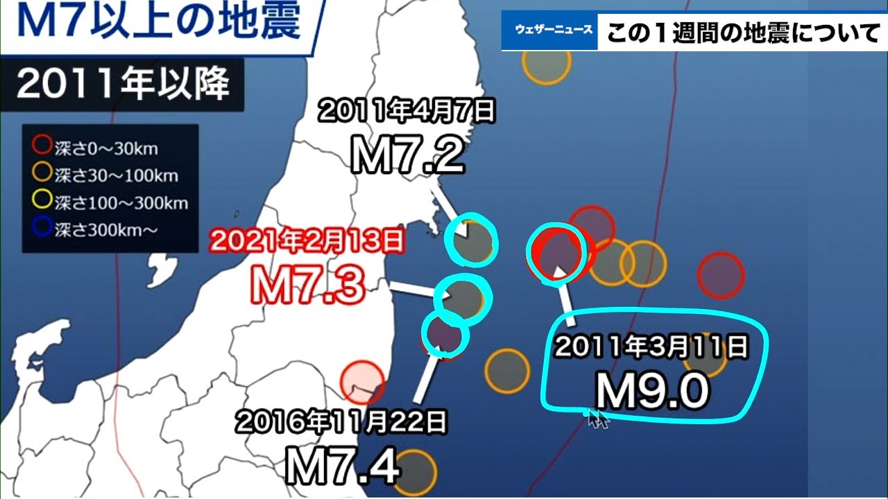 この1週間で、国内で観測された地震回数は前週に比べると増加しています。震度3以上の地震は5回で、福島県沖の地震では国内で1年8か月ぶりとなる震度6強を観測しました。福島県沖を始めとして太平洋側での地震が目立ちます。(2月8日~14日10時の集計) 2021Casterウェザーニュースキャスターゲリラ豪雨ゲリラ雷雨ニュース乾燥予報停電北日本台風台風情報地震地震情報大雨大雪天気天気予報天気痛情報暴風東日本気象気象予報士洗濯減災西日本防災