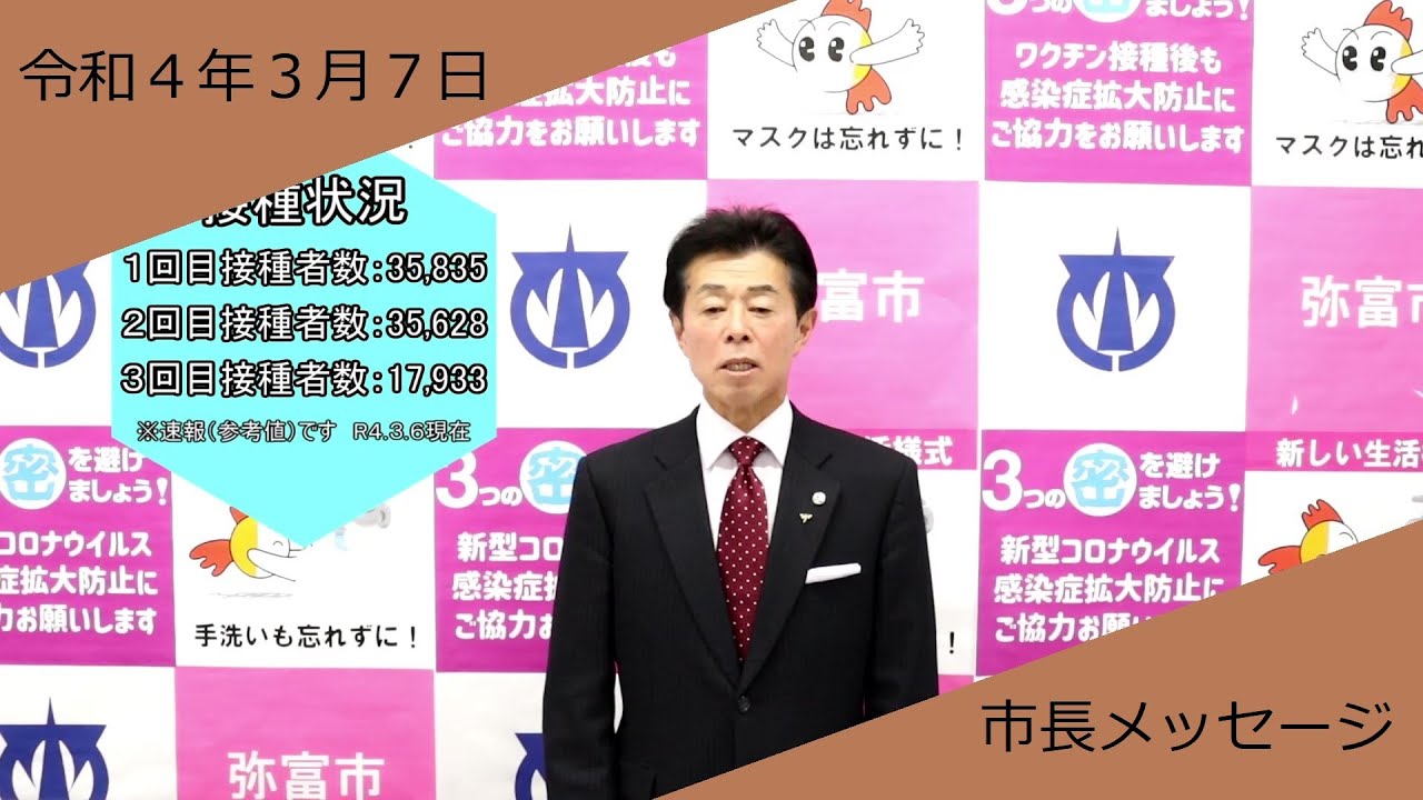 市長メッセージを公開しました。 【弥富市新型コロナウイルス感染症対策関連】 https://www.city.yatomi.lg.jp/shisei/1000645/1003719/index.html【弥富市新型コロナウイルスワクチン接種推進室からのお知らせ】 https://www.city.yatomi.lg.jp/shisei/1000645/1003719/1004202/1004062.html 市長メッセージ弥富市弥富金魚蔓延防止等重点措置とは