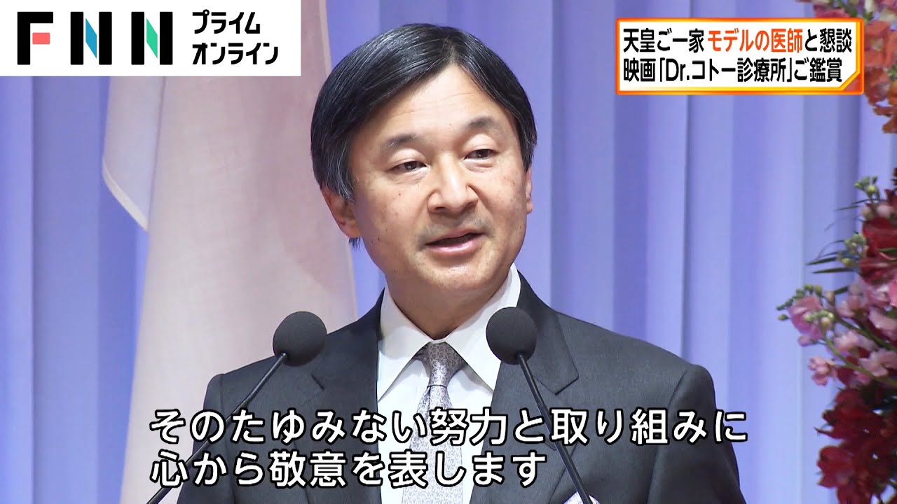 両陛下と愛子さまは、離島に赴任して地域住民に寄り添い続けた主人公のモデルとなった医師の瀬戸上健二郎さんらと鑑賞された。
