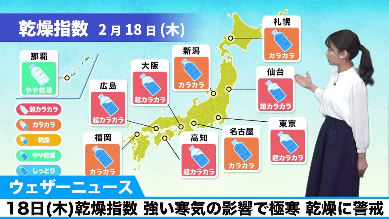 日本付近は冬型の気圧配置が続き、日本海側の広い範囲で大雪や吹雪に警戒が必要です。強い寒気が流れ込んでいる影響で全国的に厳しい冷え込みとなっており、乾燥にもより一層注意が必要な状況となっています。火の元の取り扱いには十分に注意してください。 2021Casterウェザーニュースキャスターゲリラ豪雨ゲリラ雷雨ニュース乾燥予報停電北日本台風台風情報地震大雨大雪天気天気予報天気痛情報暴風東日本気象気象予報士洗濯減災西日本防災