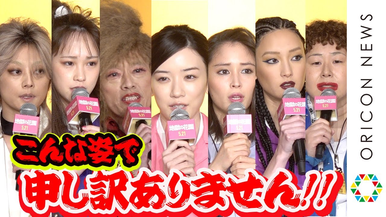 女優の永野芽郁、広瀬アリス、菜々緒、川栄李奈、小池栄子、お笑いトリオ・森三中の大島美幸、俳優の遠藤憲一が21日、映画『地獄の花園』(5月21日公開)完成報告謝罪イベントに登場。冒頭、永野の「本日はお集りいただきありがとうございます。映画とは言え、暴言を吐き続け、OLのイメージを大きく変えてしまったことを、キャスト・スタッフを代表してお詫びします。申し訳ありませんでした」のあいさつにあわせて、登壇者7人全員が一斉に頭を下げて“謝罪”した。
