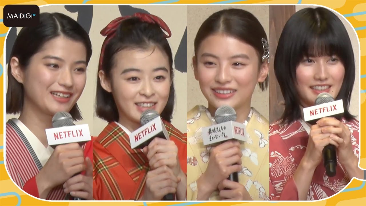 女優の森七菜さんと出口夏希さんがダブル主演を務めるNetflixのオリジナルドラマシリーズ「舞妓(まいこ)さんちのまかないさん」の配信記念プレミアイベントが1月9日、東京都内で行われ、森さんや出口さん、蒔田彩珠さん、橋本愛さん、是枝裕和監督が登場した。