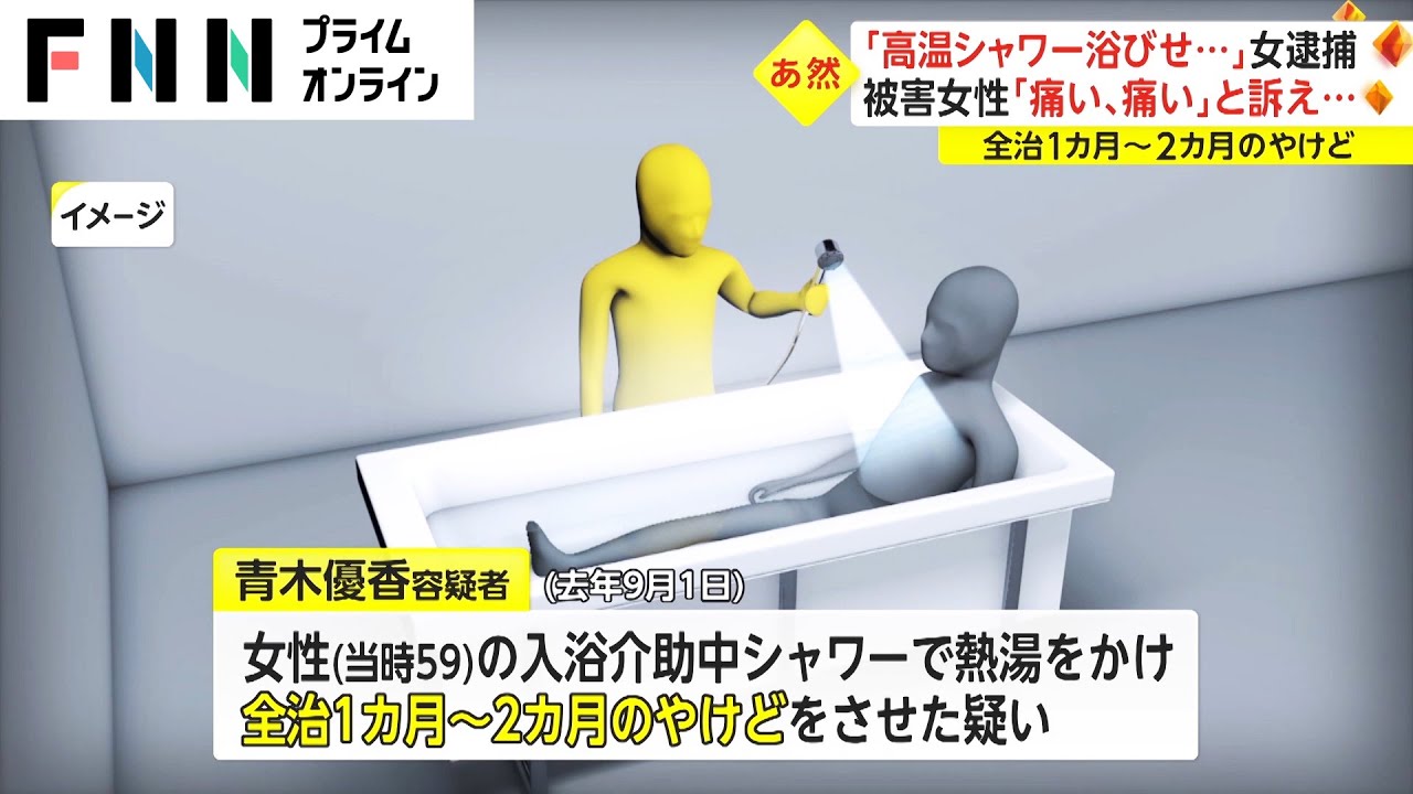 2022年9月1日、59歳の女性の入浴を介助する際、シャワーで熱湯をかけ、全治1カ月から2カ月のやけどをさせた疑いが持たれている。