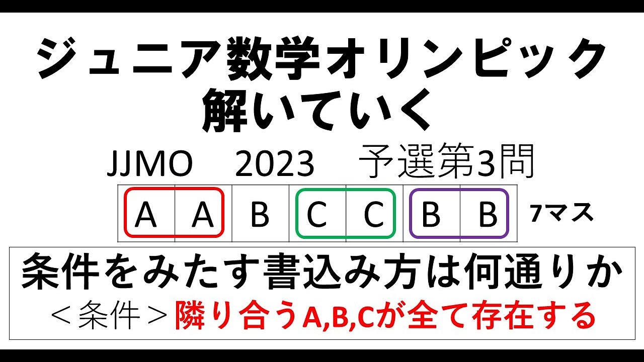 ジュニア数学オリンピック(JJMO)の問題を解いていきます。 2023年予選第3問です。#数学オリンピック #JJMO #ジュニア数学オリンピック #数学 #解説 jjmoオリンピックジュニア数学オリンピック数オリ数学数学オリンピック解説難問難関大入試問題解説