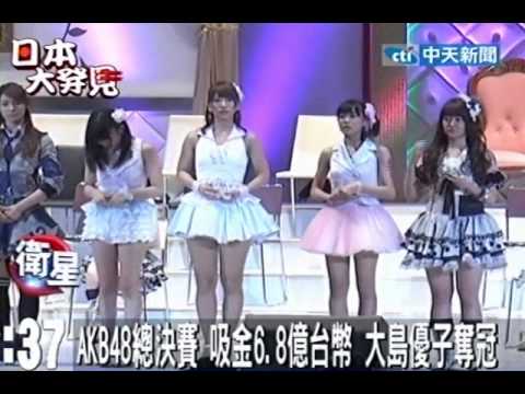 中天新聞》日本人氣偶像團體「AKB48」第4屆總選舉,6日晚在東京日本武道館進行開票,由大島優子奪下冠軍,渡邊麻友和柏木由紀則分佔二、三名。曾連獲2年的「不敗冠軍」、也剛宣布單飛的前田敦子特地到場為她獻花。 更多完整報導,詳見: http://video.chinatimes.com/ NEWS冠軍團體大島優子成員新聞日本時事第一名