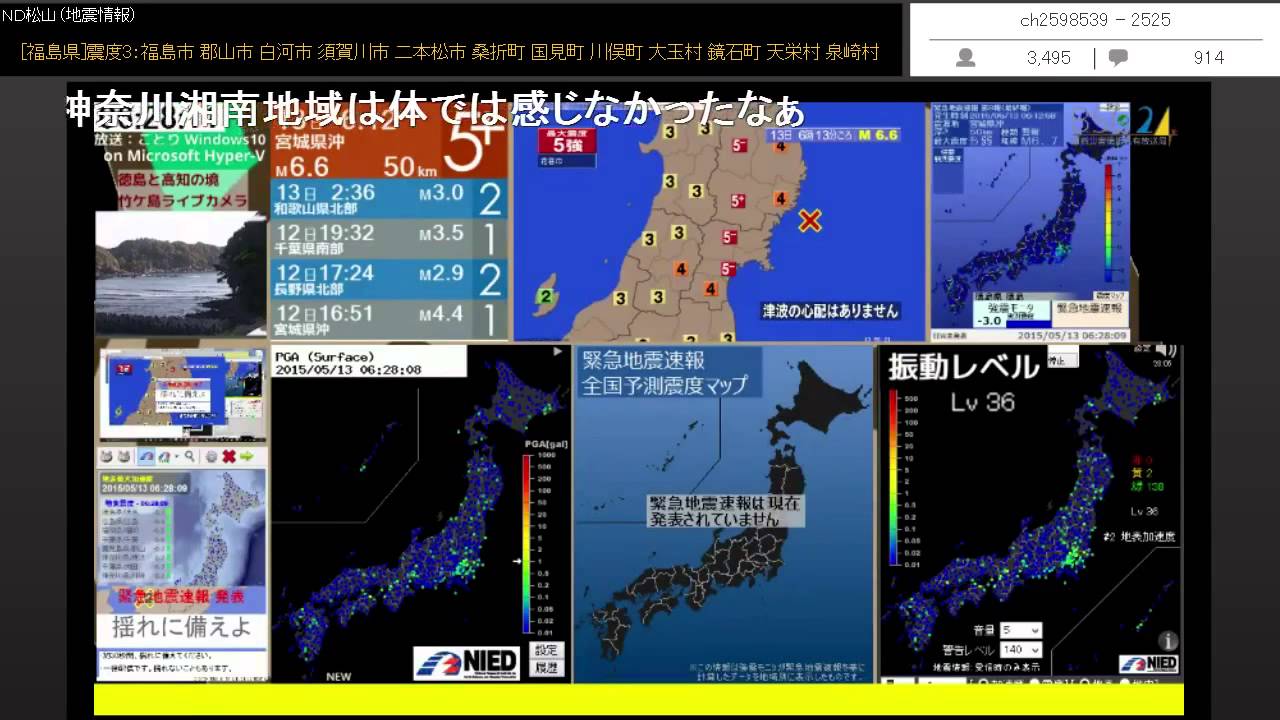 Share Facebook Twitter Pinterest LinkedIn ニコニコチャンネル「自然災害情報共有放送局」での地震発生時の生放送TSを、コメント付きアーカイブとして公開します。 基本的に5弱以上で公開する予定です。 録画:ことり エンコード:ことり 720P 宮城地震