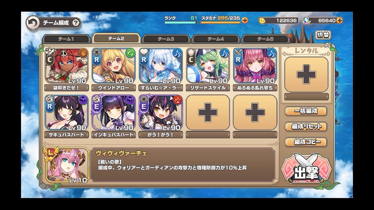 gdgdですが参考までにどうぞ~ ※うーん・・・毒ゲー!! ヴィヴィヴァーチェとポデル(攻撃力強化Ⅱ)で序盤の狼をツーパンできます ネルに再出撃時間短縮Ⅲを付けて毒を振り撒いてもらうのが主力になっています サウラがギリギリな感じでしたが、再出撃時間短縮をつけていたので変更すれば安定しそうです サウラ家の人々千年戦争アイギス