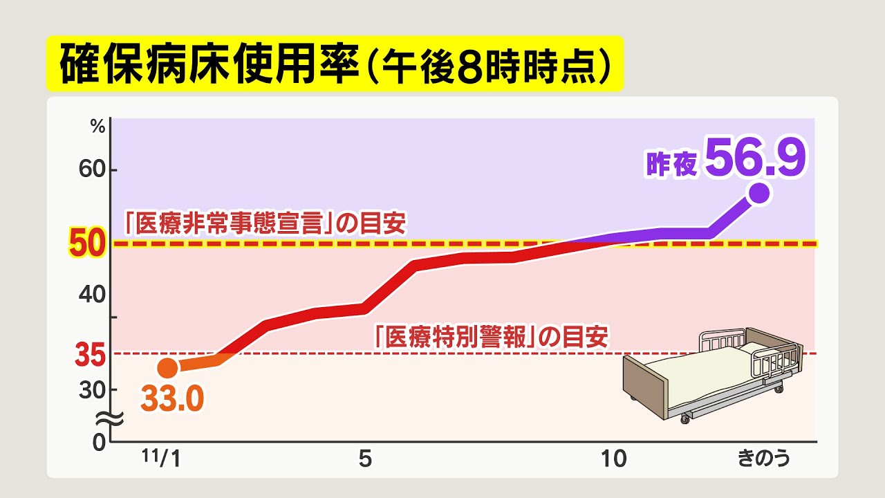 知事は、今後、インフルエンザなどコロナ以外の患者の増加も予想され、さらなる医療のひっ迫が懸念されると述べました。