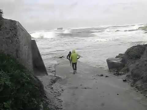 【引き波の恐怖】カップルが津波に飲み込まれる瞬間