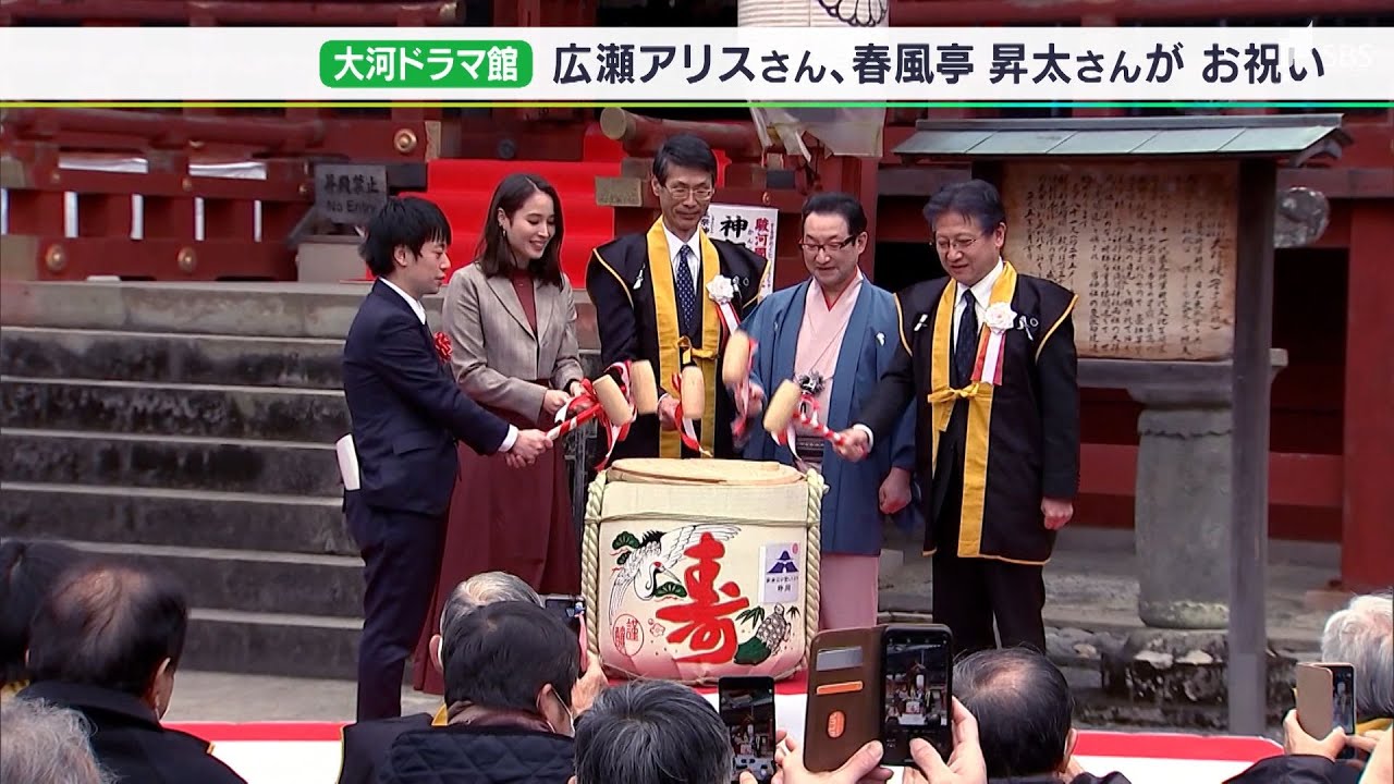 静岡市の静岡浅間神社の中に1月27日にオープンした「大河ドラマ館」。オープニングセレモニーには名誉館長を務める春風亭昇太さんと家康の側室・於愛の方役・広瀬アリスさんがお祝いに駆け付けました。