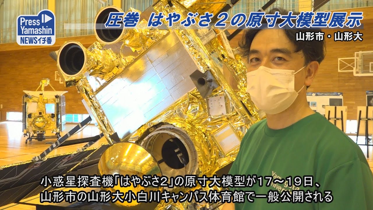小惑星探査機「はやぶさ2」の原寸大模型が17~19日、山形市の山形大小白川キャンパス体育館で一般公開される。数々の困難を乗り越えて成し遂げられたミッションについて理解を深めることができる。 詳細は、朝刊と「モバイルやましん」をご覧ください。#山形新聞 #はやぶさ2 #はやぶさ #山形大 #山形市 #模型 #原寸大 劇場版 HAYABUSA2~REBORN