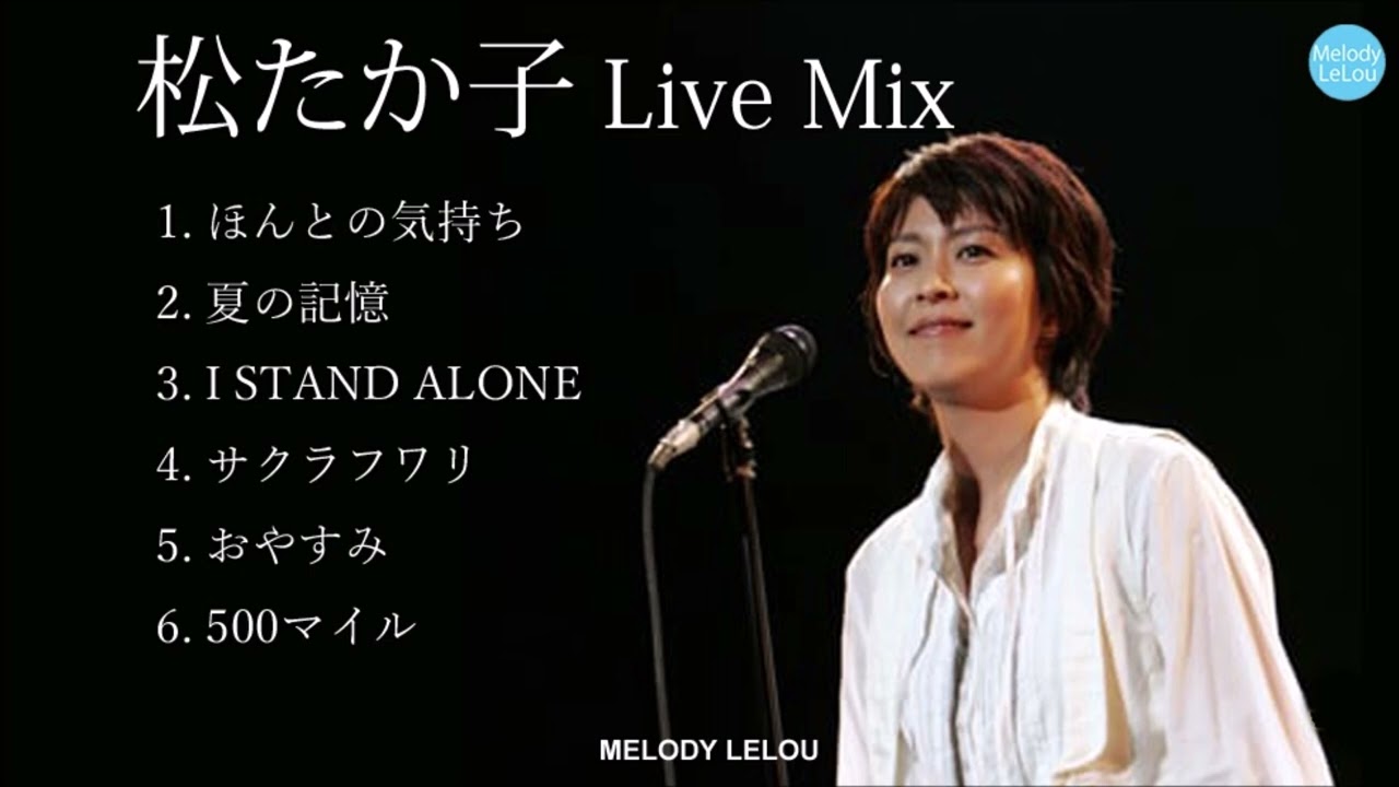 松たか子 Live Mix 1. ほんとの気持ち 0:00 2. 夏の記憶 04:51 3. I STAND ALONE 09:144. サクラフワリ 14:015. おやすみ 16:47 6. 500マイル 20:14 ▼蔵・春燈・櫂 全8枚セット https://a.r10.to/h6zRzp ▼峠 最後のサムライ【Blu-ray】 [ 司馬遼太郎 ] https://a.r10.to/hUDyZg#松たか子 #おやすみ#コンサート500マイルI stand aloneサクラフワリほんとの気持ちみんなひとりライブ夏の記憶夢のしずく小田和正明かりの灯る方へ月のダンス松たか子