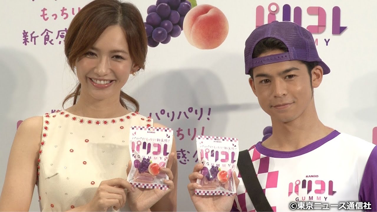 カンロ株式会社が展開する新食感グミ「パリコレ」の新フレーバー「グレープ&ピーチ」の発売と、9月11日から13日まで東京・渋谷で行われるサンプリングキャンペーン「パリコレお届け便」の実施記念イベントが行われ、ゲストにタレントの優木まおみと菅谷哲也が登場しました。