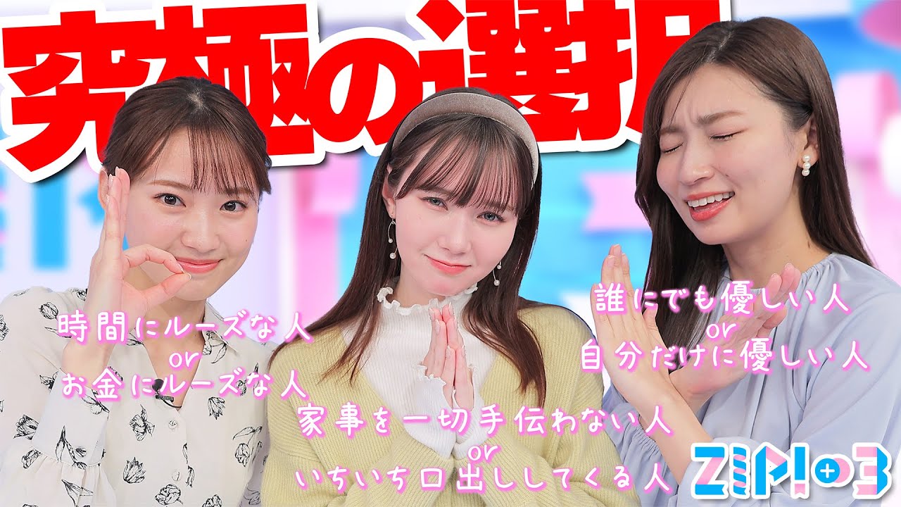 ✅ 0:00 女子会スタート ✅ 0:39 家事をしない人orいちいち口出しする人 ✅ 4:19 時間にルーズな人orお金にルーズな人 ✅ 6:15 マーシュ彩が1時間遅刻しました! ✅ 8:34 誰にでも優しい人or自分にだけ優しい人 ✅ 11:14 番組のエンディングに映っていない人がいる理由は… #究極の選択 #恋愛 #女子会 ZIPアナウンサーお天気キャスターかわいいダンスフリートークマーシュ彩日テレ日本テレビ気象予報士水卜麻美笑う質問コーナー食べる