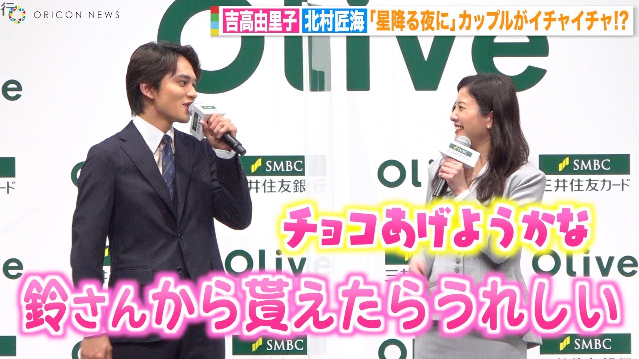 俳優の吉高由里子(34)と北村匠海(25)が6日、都内で行われた『SMBCグループ 新CM発表会』に出席。テレビ朝日系ドラマ『星降る夜に』(毎週火曜 後9:00)で共演中の2人の共演に吉高は「うれしいですね。撮影のない日に違う場面で会っているのが不思議」と喜んだ。
