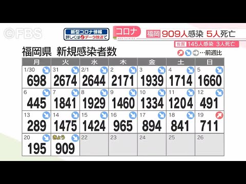 福岡県では21日、新型コロナウイルスの新規感染者が909人確認されました。