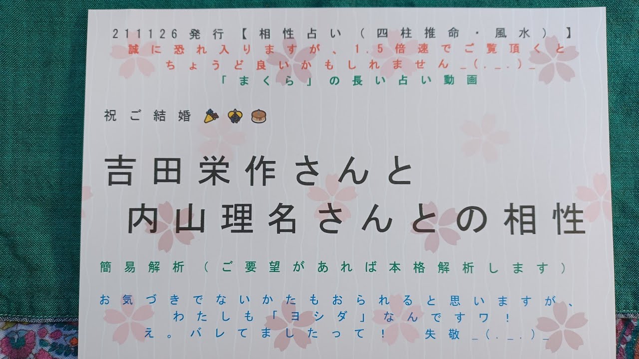 #脱線の多い占い動画 #吉田栄作さん #内山理名さん #相性占い #四柱推命 #風水