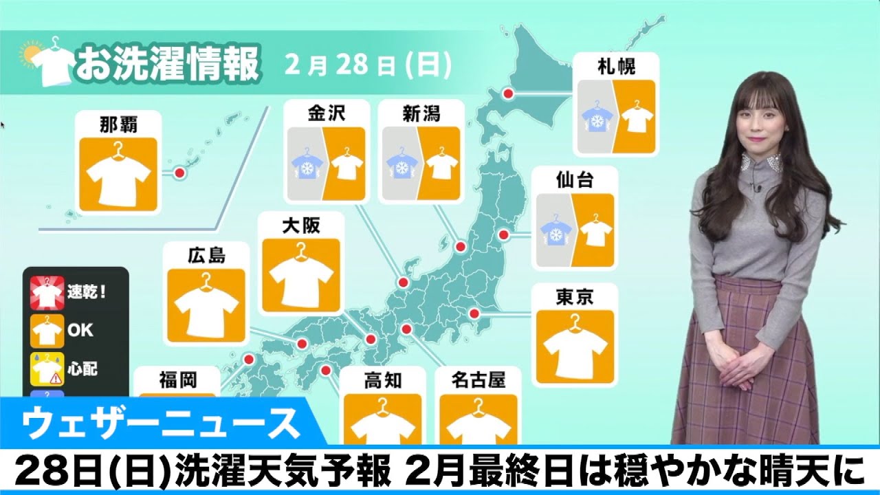 移動性の高気圧に覆われて、関東から北日本にかけては晴れるところが多くなります。日本海側も天気の崩れはなく、日差しが届く見込みです。27日(土)に比べると風が弱まりますので、穏やかな一日となります。全国的に外干し出来るチャンスがありそうです。 西日本の太平洋側は高気圧の周囲を吹く、湿った空気が流れ込む影響で雲が広がりやすくなります。雨の降ることもありますので、外干しは空の様子確認が必要になりそうです。 2021Casterウェザーニュースキャスターゲリラ豪雨ゲリラ雷雨ニュース乾燥予報停電北日本台風台風情報地震大雨大雪天気天気予報天気痛情報暴風東日本気象気象予報士洗濯減災西日本防災