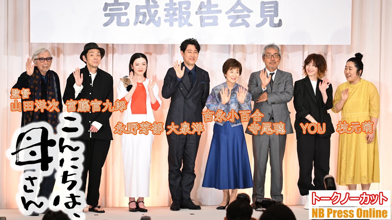 2023年3月15日、ホテル雅叙園東京にて、映画『こんにちは、母さん』完成報告会見が行われ、主演の吉永小百合、大泉洋、永野芽郁、寺尾聰、宮藤官九郎、YOU、枝元萌、山田洋次監督が登壇。これまでの数々の山田洋次監督に出演してきた吉永小百合と、山田組初参加&吉永とも初共演となる大泉洋の親子役に注目の作品。
