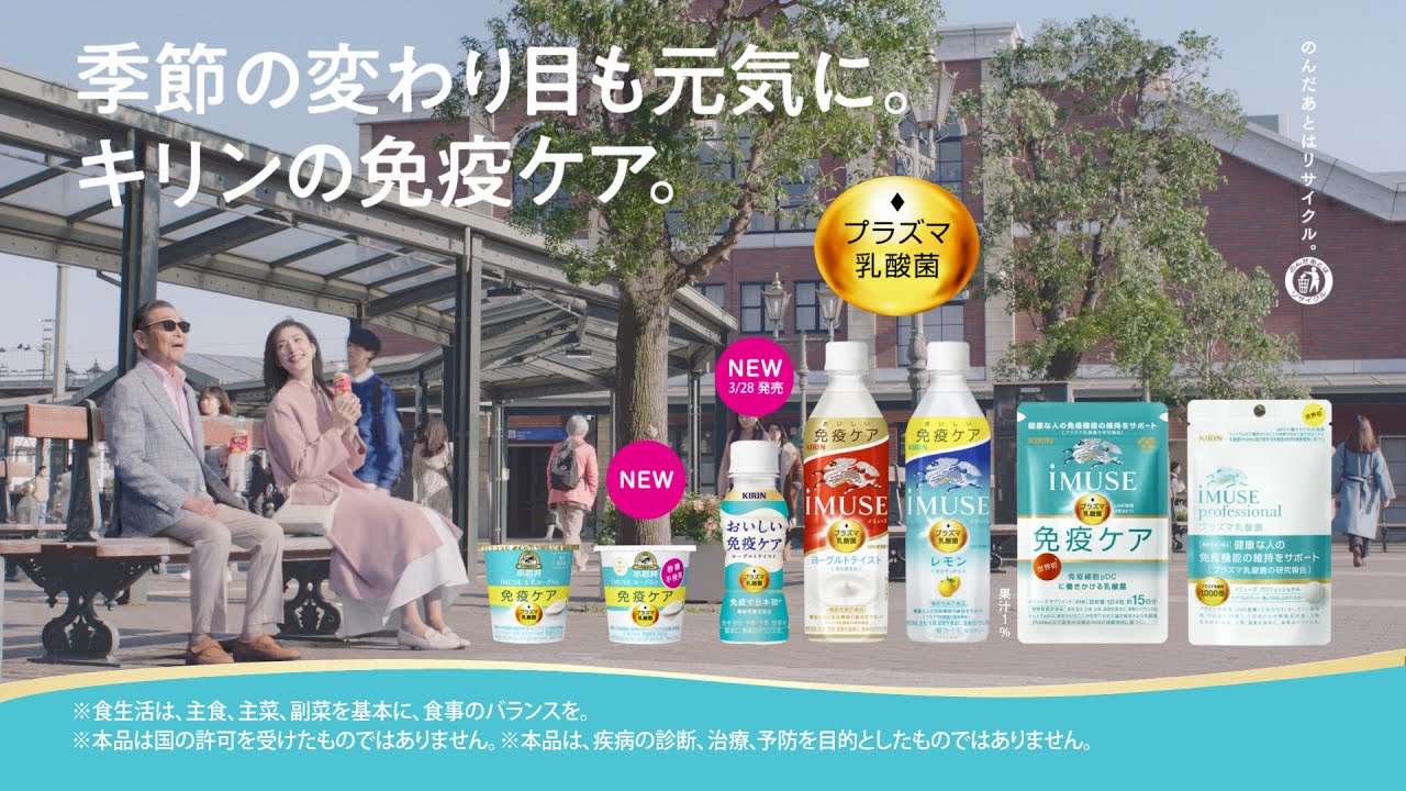 朝の散歩をするタモリさんと天海さん。 季節の変わり目で寒そうにしている人たちとすれ違います。 そんななか、「季節の変わり目は気を付けないとね。いつもの元気は、これで。」と 免疫ケアをおすすめするタモリさんと天海さん。 「内側から元気に!」「自分の免疫は自分でケア!」と、 今日もプラズマ乳酸菌を手にするタモリさんと天海さんなのでした。出演タレント:タモリ,天海祐希 KIRINキリンタモリタモリさんプラズマ乳酸菌乳酸菌免疫免疫機能天海さん天海祐希機能性表示食品