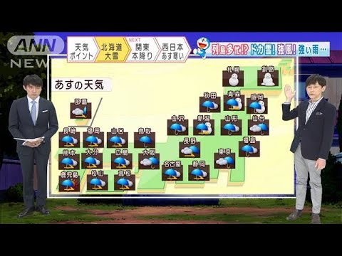 きょうの「全国の天気」はこちら、「広い範囲で雨 北海道は“ドカ雪”」です。