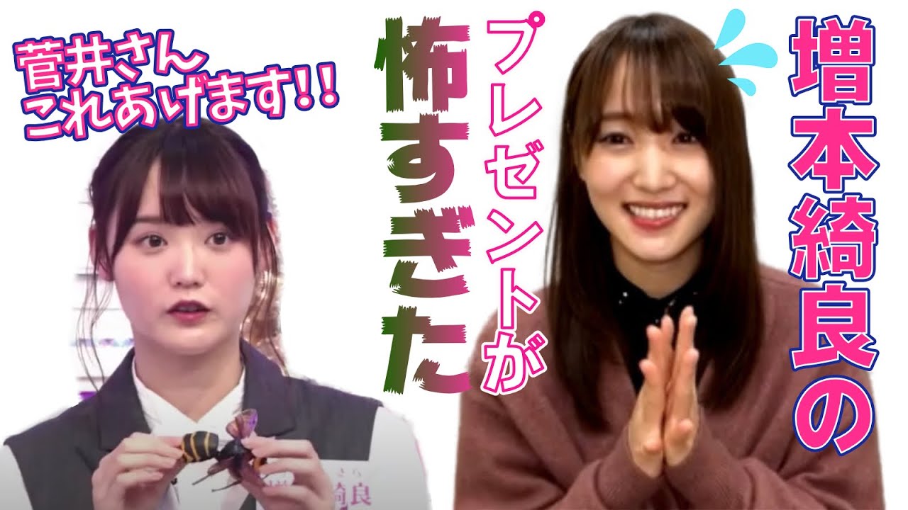 ハチのフィギュアを大好きな菅井友香に渡す増本綺良
