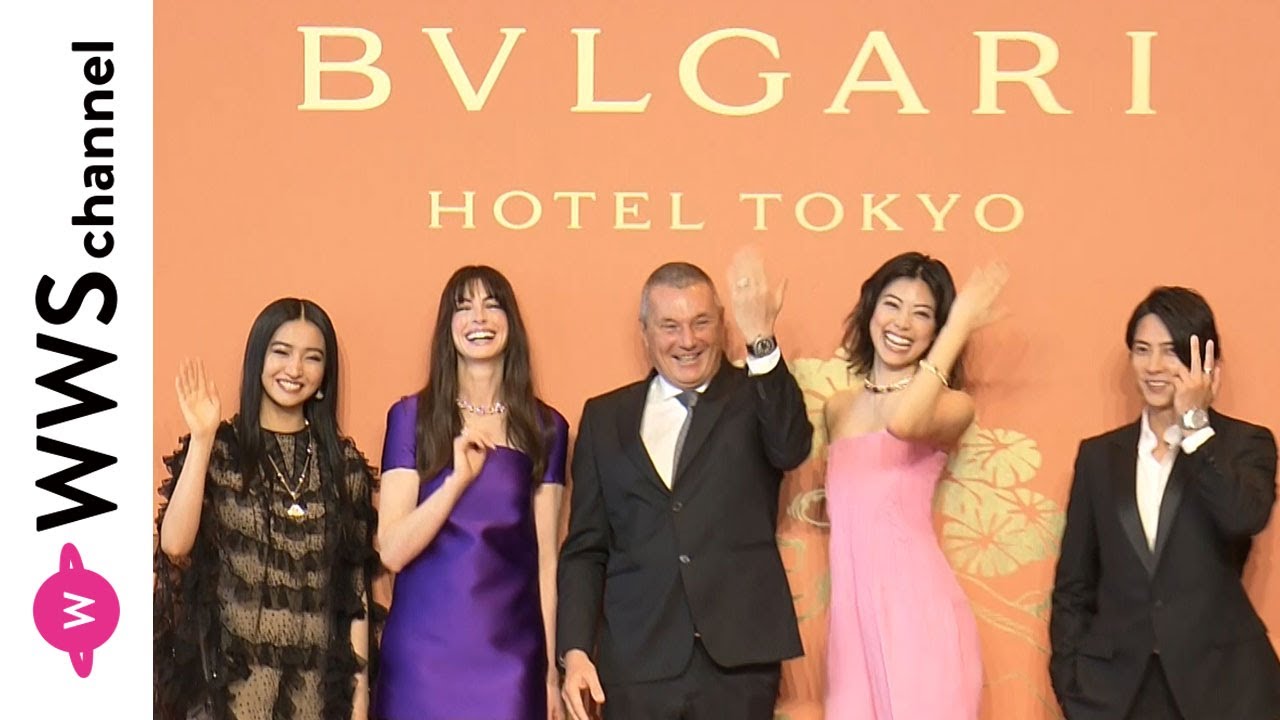 4月4日、ブルガリアンバサダーのアン・ハサウェイ、⼭下智久、Koki,、森星が「ブルガリ ホテル東京」の記者発表会に登場した。