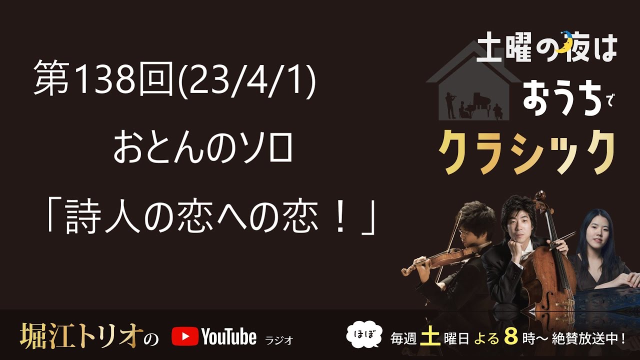 (ほぼ)毎週土曜日・夜8時から、堀江トリオから一人が出演し、父・堀江政生と音楽にまつわる様々な話をしています。