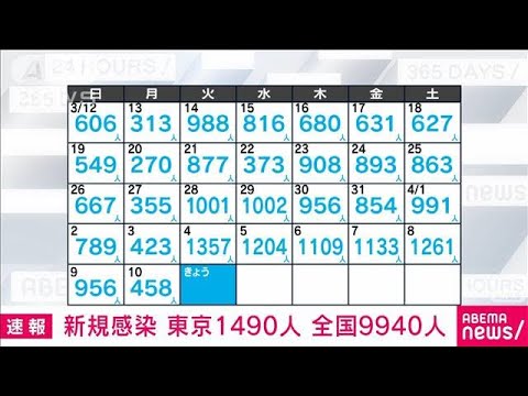 東京都で11日に確認された新型コロナウイルスの新たな感染者は1490人でした。先週の火曜日より133人増えています。