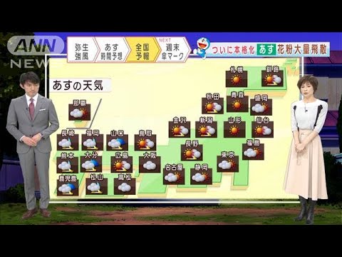 【全国の天気】ついに本格化(泣)あす花粉大量飛散(2021年3月3日)