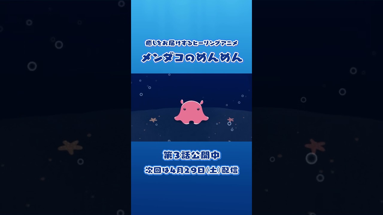深海のアイドル 『メンダコのめんめん』のYouTubeがスタート【キャスト】 めんめん:雨宮天 深海の声(ナレーション):雨宮天 このチャンネルでは、1日の終わりにめんめんが癒しを届けるヒーリングアニメを配信します。メンダコとは…? 深海に住むタコの仲間。海の底でゆったり穏やかに過ごす姿に癒される人も…。【Twitter】 @menmen_pancake #Deepsea#めんだこ深海深海生物雨宮天