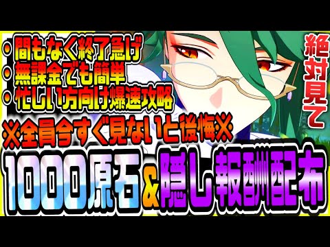 原神げんしんの無料で1000原石や隠し報酬もらえる新要素や最新アプデイベントなど紹介ルート構想計画超簡単攻略も解説