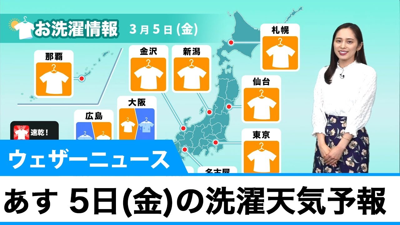 西日本では午前中ほど雨が降り、午後には止んでくる所が多くなります。東日本も雲が広がりやすく、ポツポツと雨の降る可能性もあるため、外干しの際は空の様子を確認しながらが良さそうです。