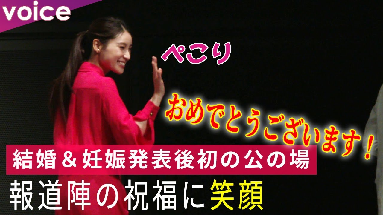 土屋太鳳が7日、都内で行われた『アクターズ・ショート・フィルム3』完成報告会に登壇した。片寄涼太と結婚、妊娠を発表して以来初の公の場。赤いロングドレス姿でステージに立った。このプロジェクトで短編映画の監督を務めた。「まさか監督として舞台挨拶をさせて頂く日がくるなんて人生何があるか分からないなと思いました」。報告会を終え降壇時に報道陣から「結婚おめでとうございます」と祝福の言葉が寄せられると笑顔で一礼して応えた。 #土屋太鳳 Voiceアクターズ・ショート・フィルム3.結婚ヴォイス土屋太鳳妊娠