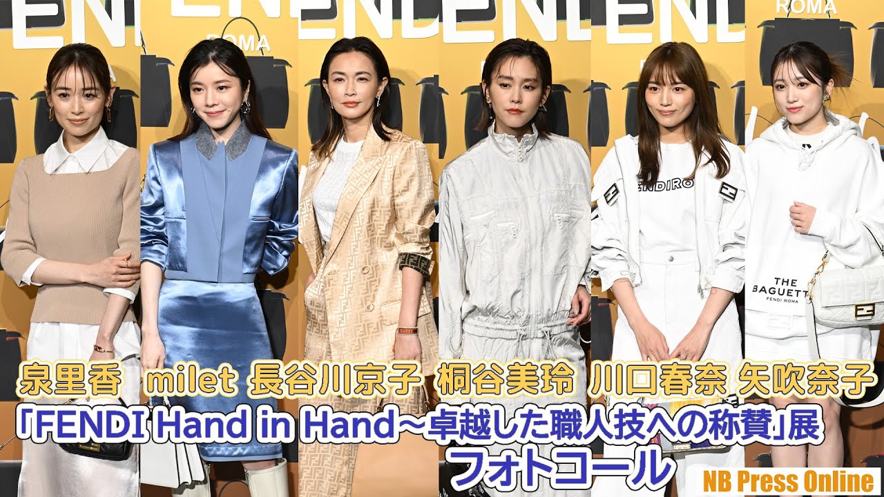 (見どころ頭出しあり)2023年4月19日、表参道にて、「フェンディ ハンド・イン・ハンド~卓越した職人技への称賛」展 フォトコールが行われ、俳優、アーティストらがフェンディのファッションに身を包み登壇した。