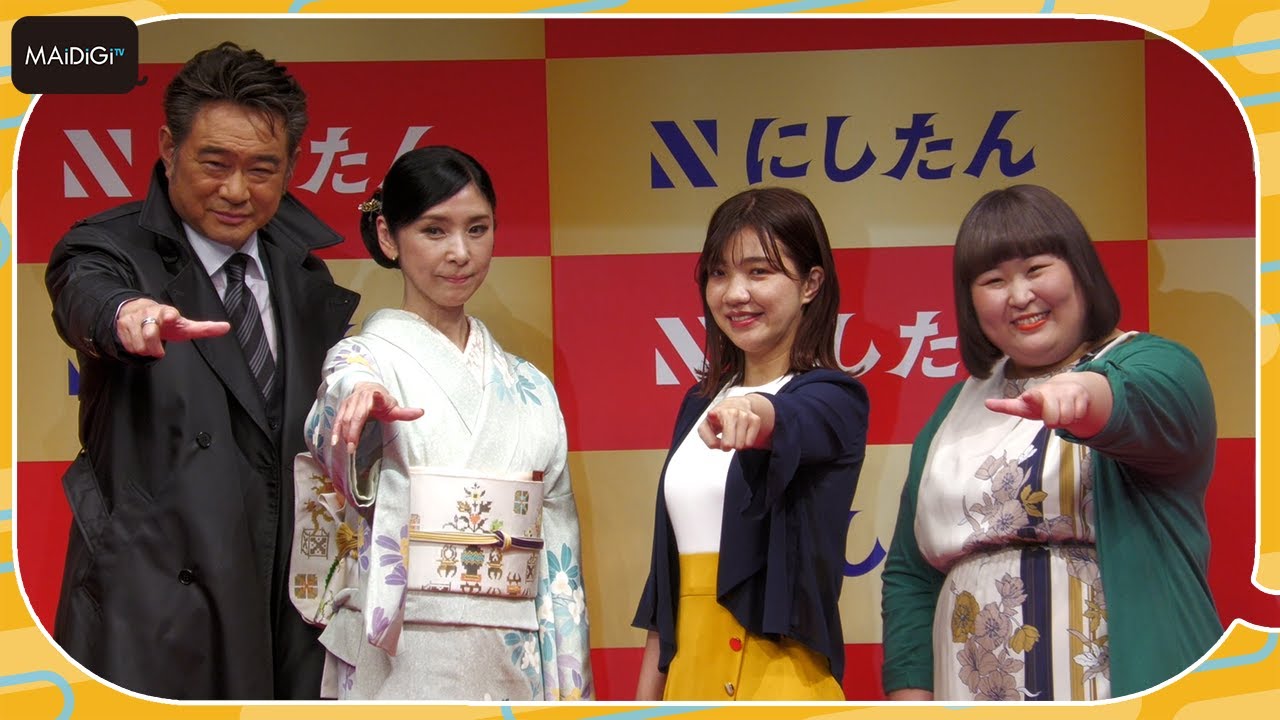 俳優の黒木瞳さんと船越英一郎さん、お笑いトリオ「3時のヒロイン」の福田麻貴さん、かなでさんが5月15日、東京都内で開催された「にしたんクリニック」新CM発表会に登場した。 火曜サスペンス劇場風のコミカルな曲で入場した3組。福田さんは「今までいろんな出囃子(でばやし)で出てきたんですが、今まで一番面白い」と笑顔を見せた。#### #黒木瞳 #船越英一郎 #3時のヒロイン 3時のヒロインmaidigitv取材・リポート船越英一郎黒木瞳