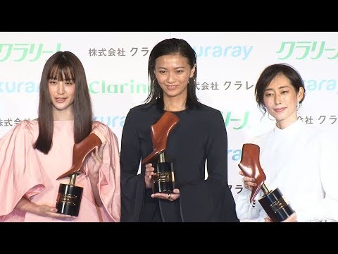 女優の山本美月、榮倉奈々、木村多江が、「第17回クラリーノ美脚大賞2019」の授賞式に出席した。20代部門で受賞した山本は、「第36回ベストジーニスト2019」の一般選出部門でも受賞しており、「令和は脚の年になったと思いました」とコメント。30代部門の榮倉は「長年、パーソナルトレーニングを続けています。ヨガを取り入れたり、酵素風呂に入ったりもしています」と美脚と健康の秘訣(ひけつ)を語った。オーバーフォーティー部門で受賞した木村は、「脚がむくみやすいので、常にマッサージ器を持ち歩いています」と話していた。ティーン部門で受賞した高橋ひかるは、体調不良で休養中のため欠席した。