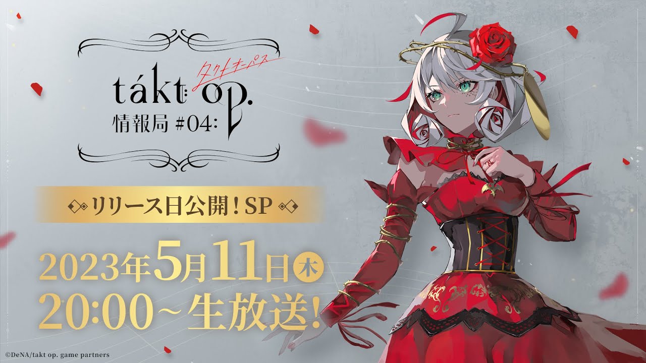 スマホ向けアプリゲーム『takt op.(タクトオーパス) 運命は真紅き旋律の街を』の最新情報を生放送でお届け!ついにアプリのリリース日を発表!さらに新たなムジカート5人の公開などを予定しています!
